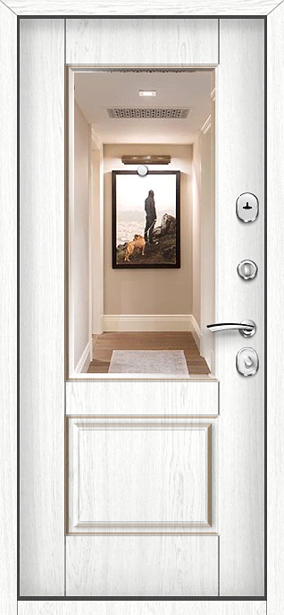 Входная дверь с магнитным уплотнителем Черный Шелк снаружи / Белый Софт внутри и зеркалом максимум №23