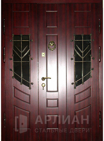 Двухстворчатая входная дверь со стеклом и ковкой №9