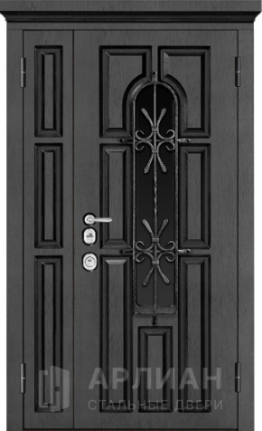 Дверь полуторная металлическая со стеклом и художественной ковкой №411