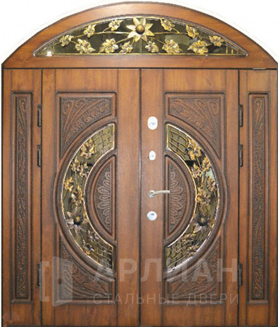 Фото «Арочная двустворчатая дверь элит отделка снаружи массив №90»